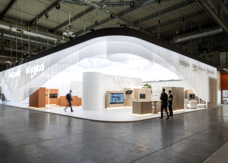 El pabellón de Beko en EuroCucina 2026, diseñado por MCA (Mario Cucinella Architects), se concibe como un paisaje habitable: un espacio continuo y fluido que conecta cuatro universos de marca diferenciados bajo una misma identidad arquitectónica.